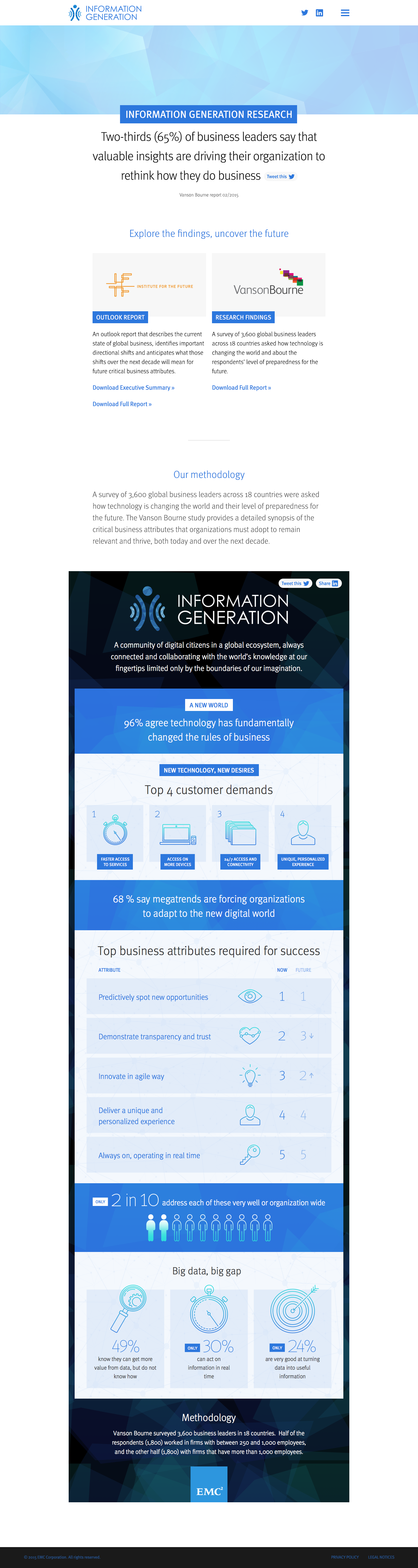 I picked up the homepage from another team while it was half designed. I revised it and completed, added article pages and navigation, made it responsive. I also re-designed a provided infographic to make it match the overall look of this website.