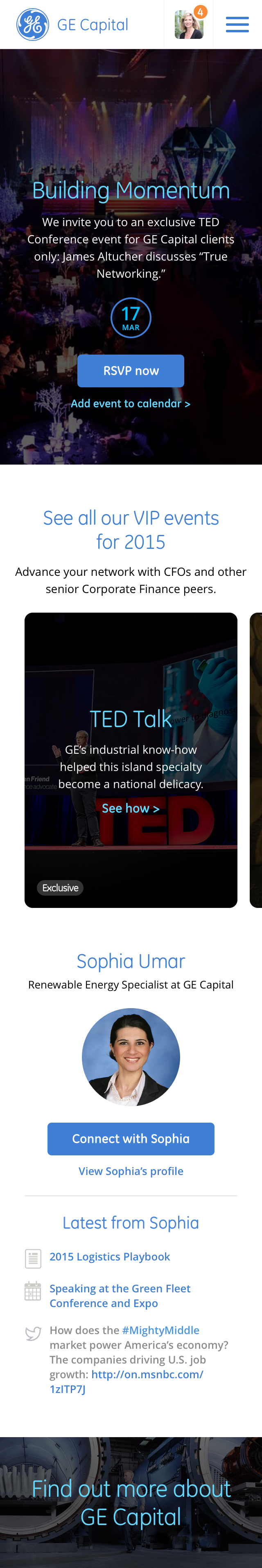 In this quick pitch work, we reimagined the homepage for GE Capital in support to the strategy presented in the pitch deck.