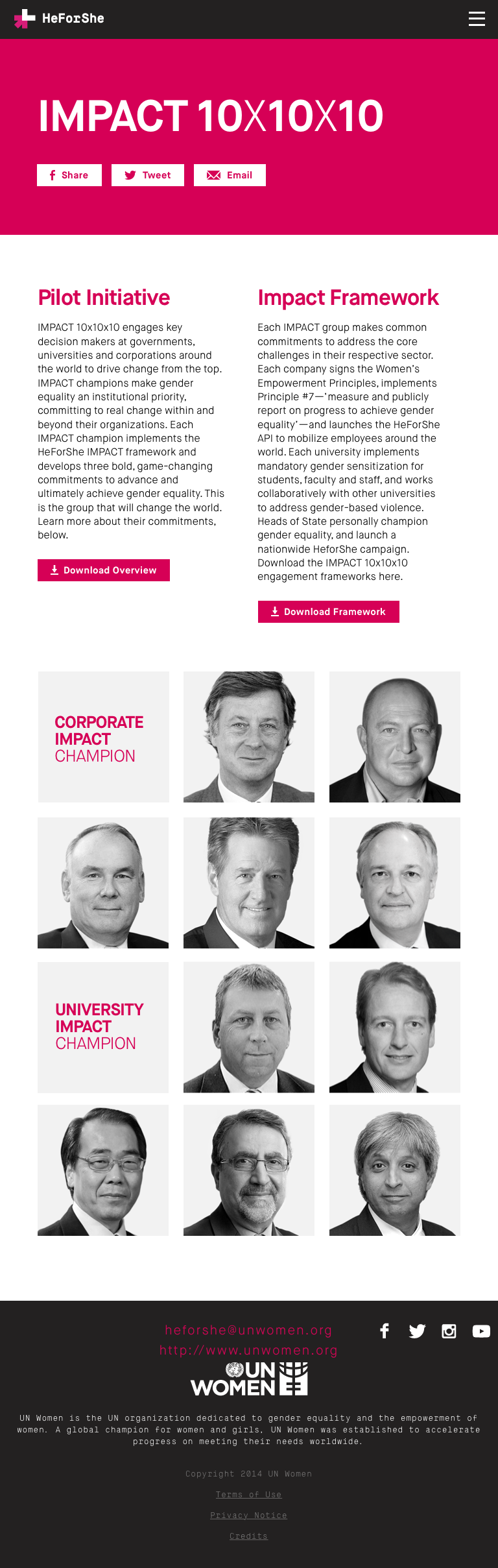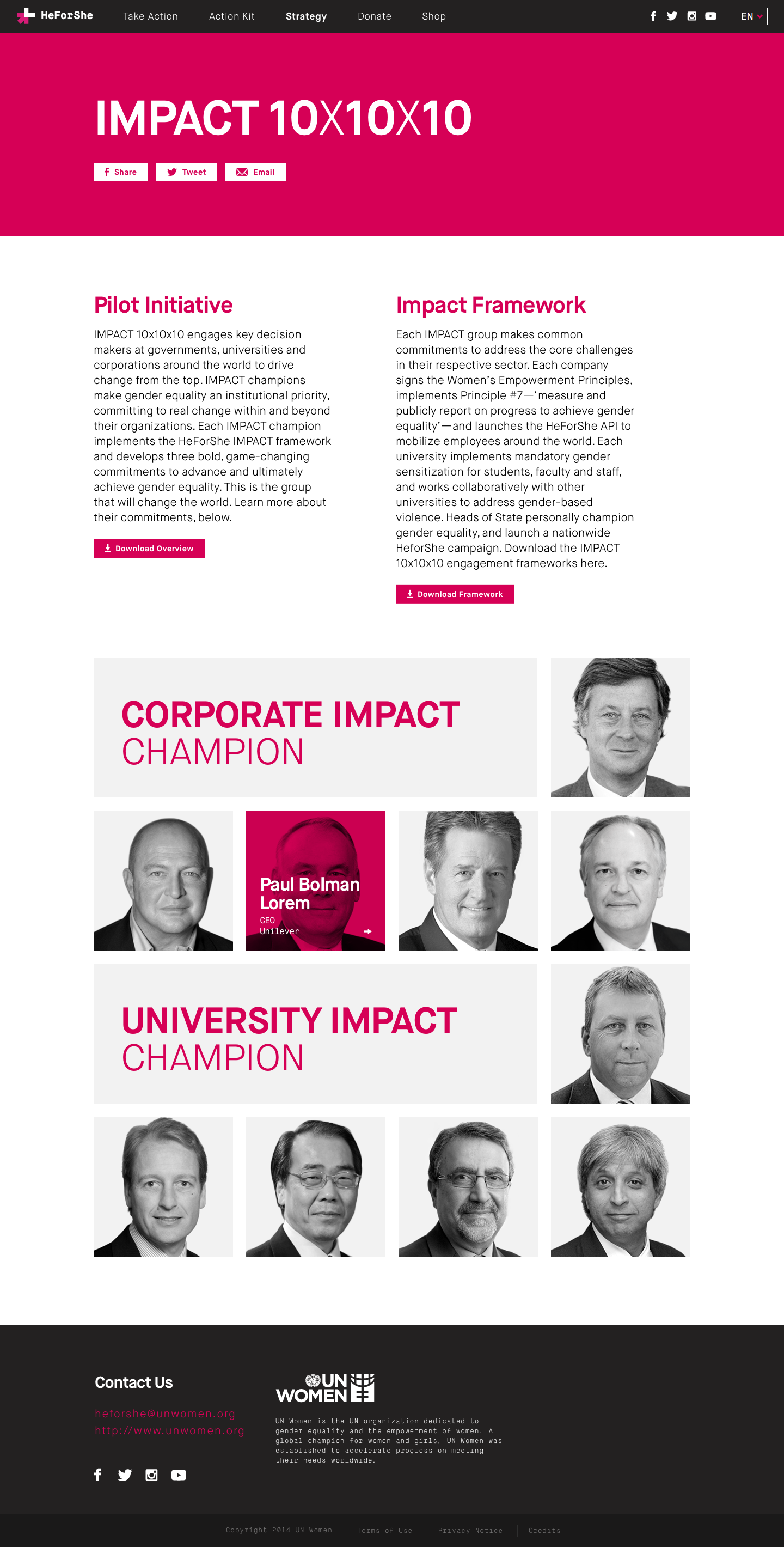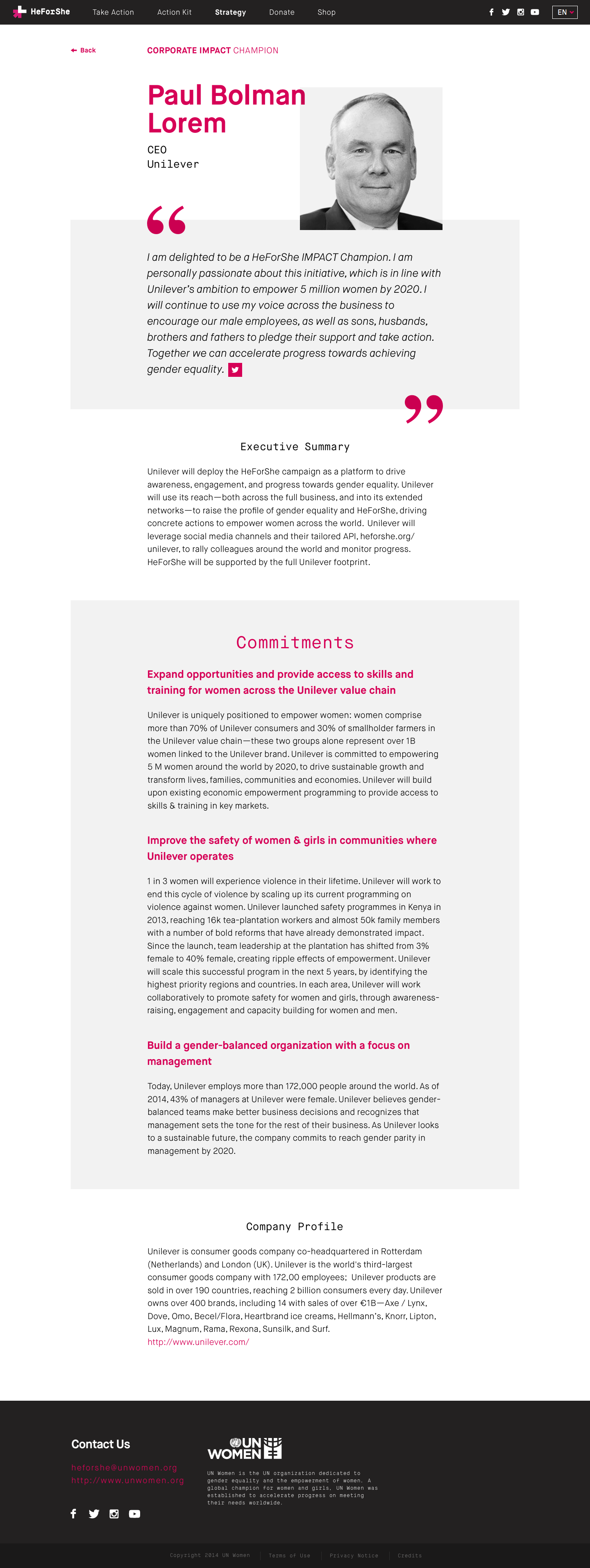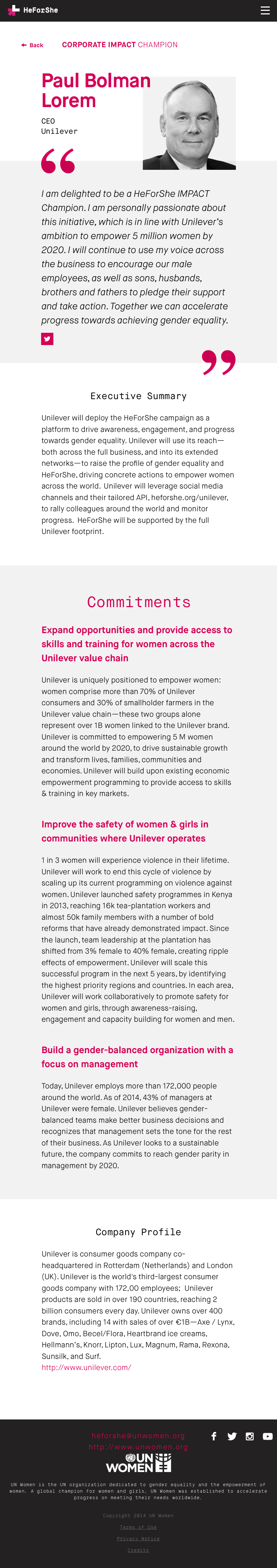 HeForShe is an UN movement for gender equality. They needed to add a new section to their site, showcasing profiles of advocates that committed to their cause.