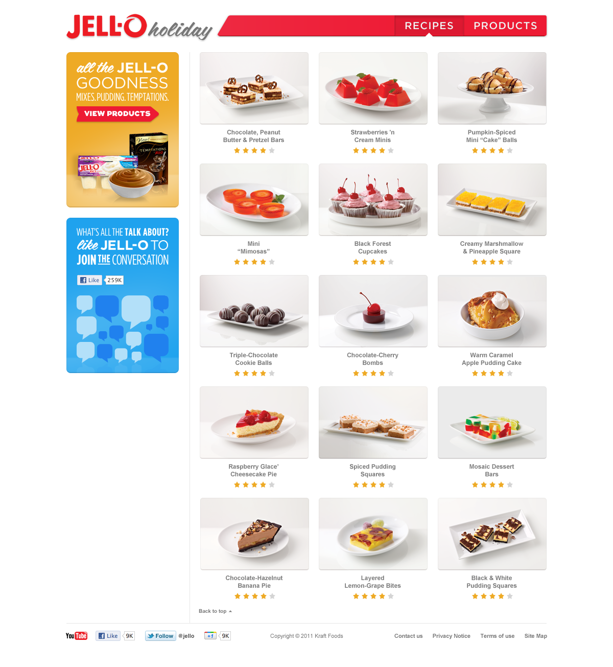 In time for Christmas Jell-O's launched a new advertising campaign. The look of the website too needed to be refreshed to match the new identity used in the campaign.