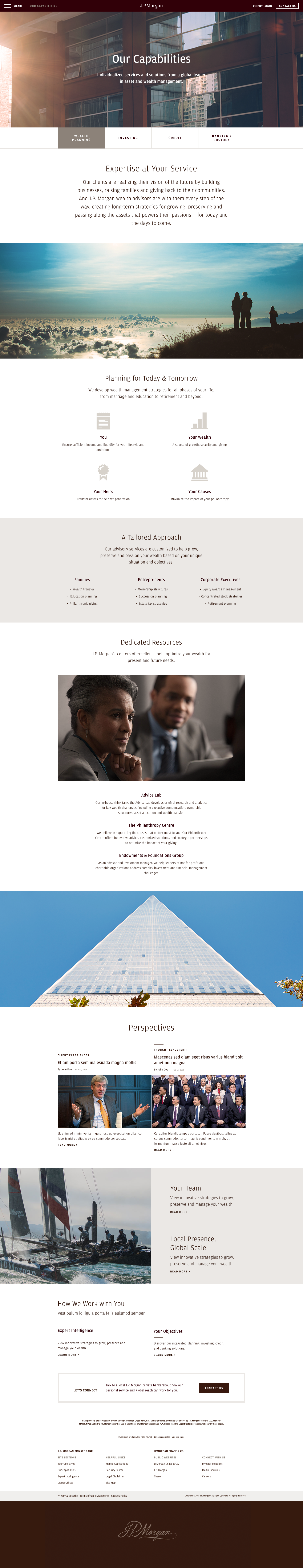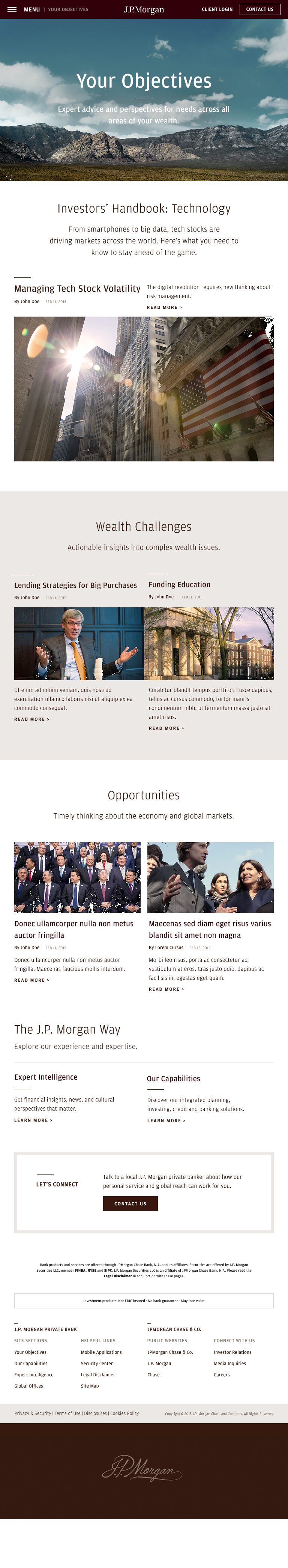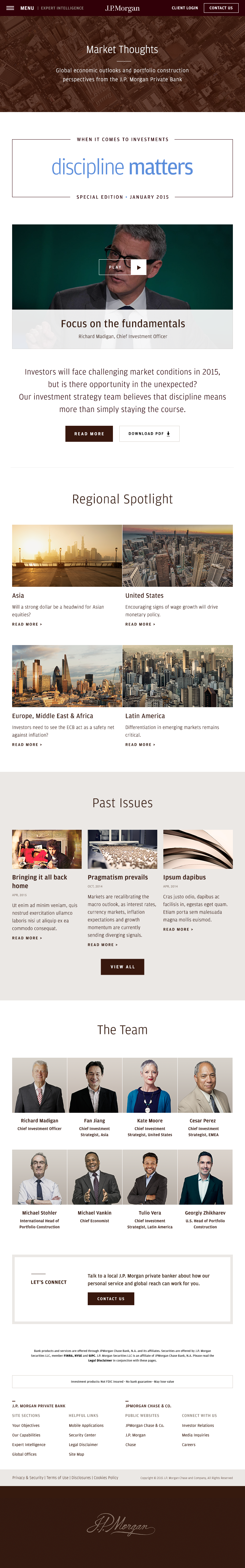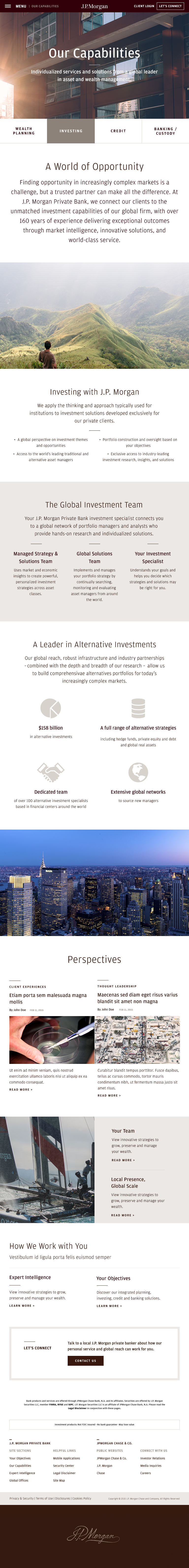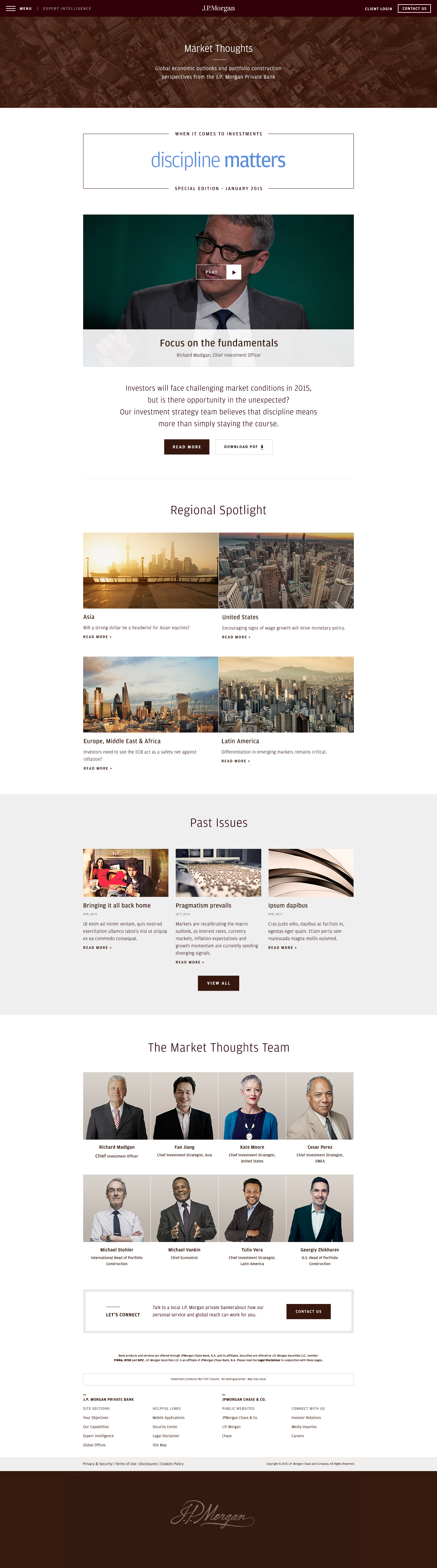 JPM Private Bank distributes every year to its clients dozens of thought leadership pieces. In this website redesign, we joined informative material about the services