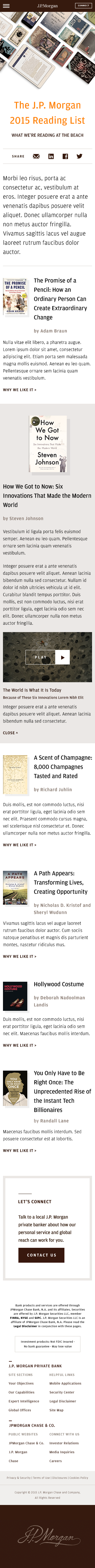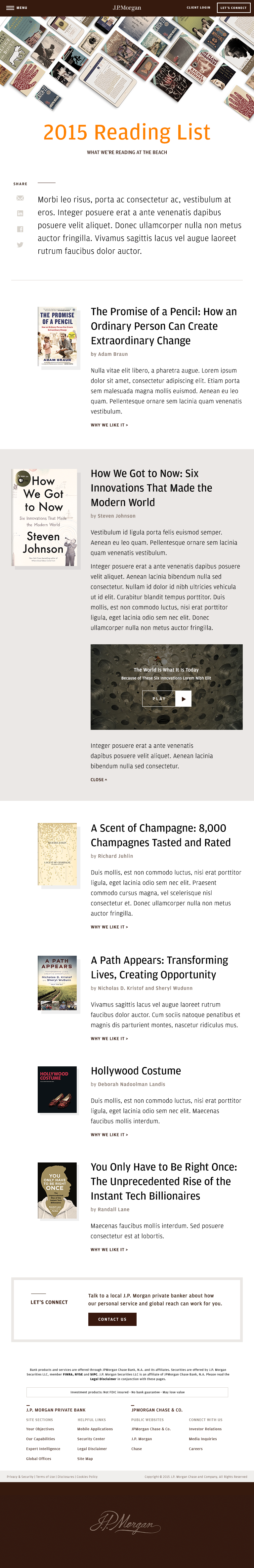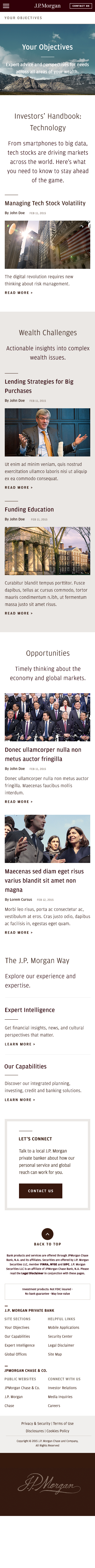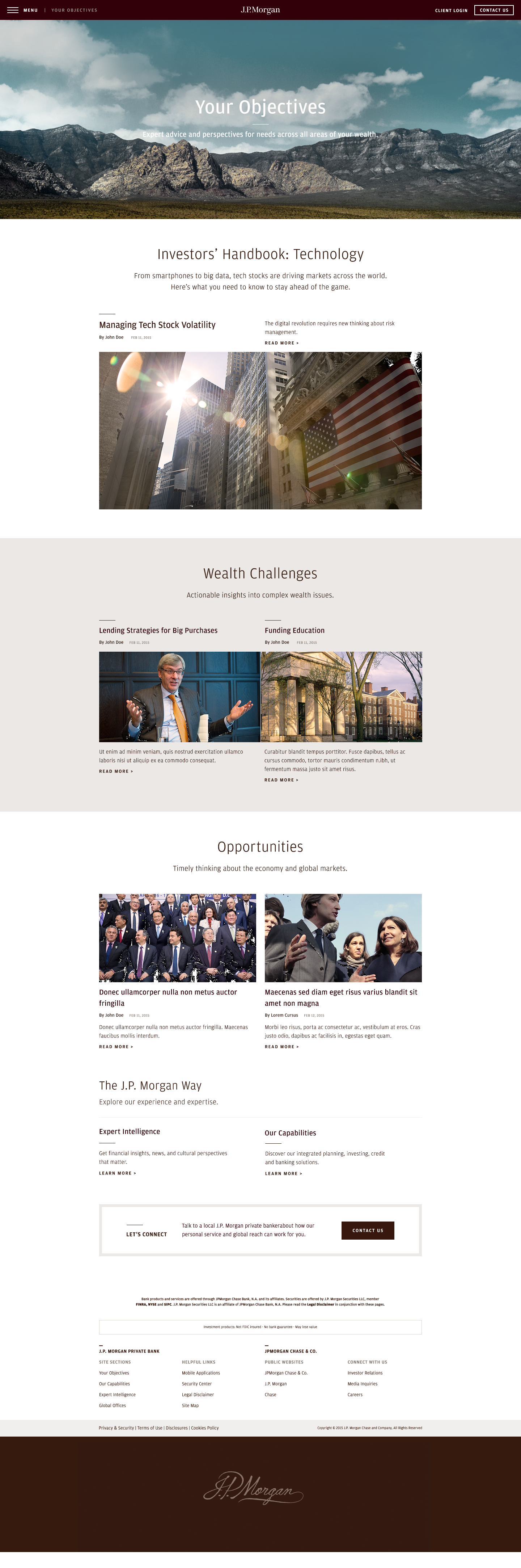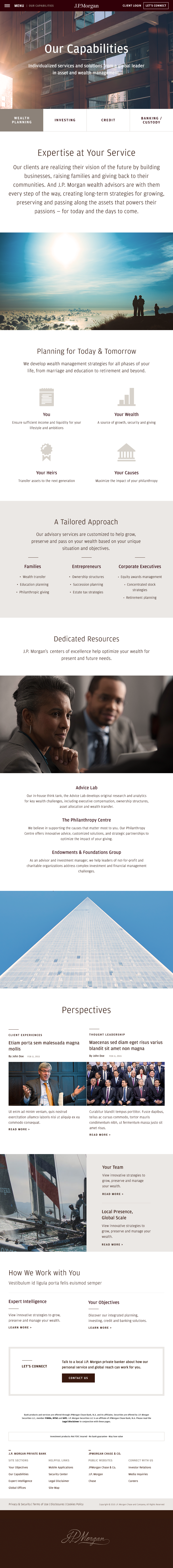 JPM Private Bank distributes every year to its clients dozens of thought leadership pieces. In this website redesign, we joined informative material about the services